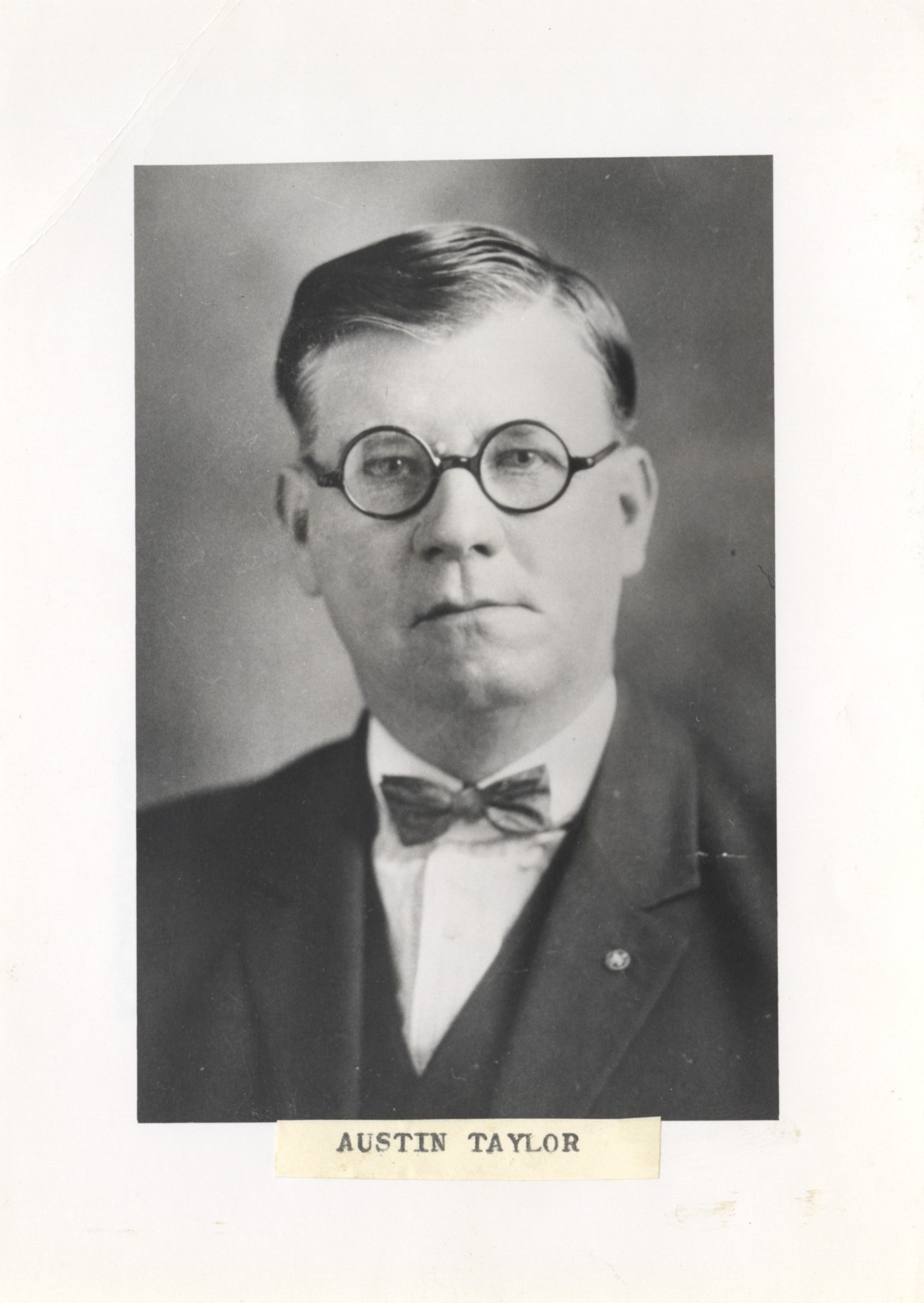 - scan of a black and white photo of Austin Taylor.