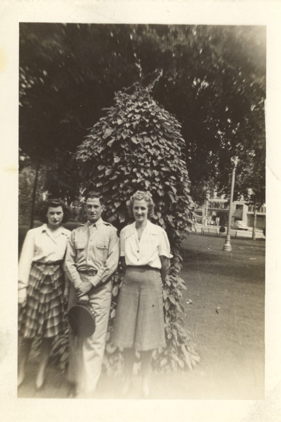- Black and white photo image of Marge and Billy Hutchison with an unidentified woman.