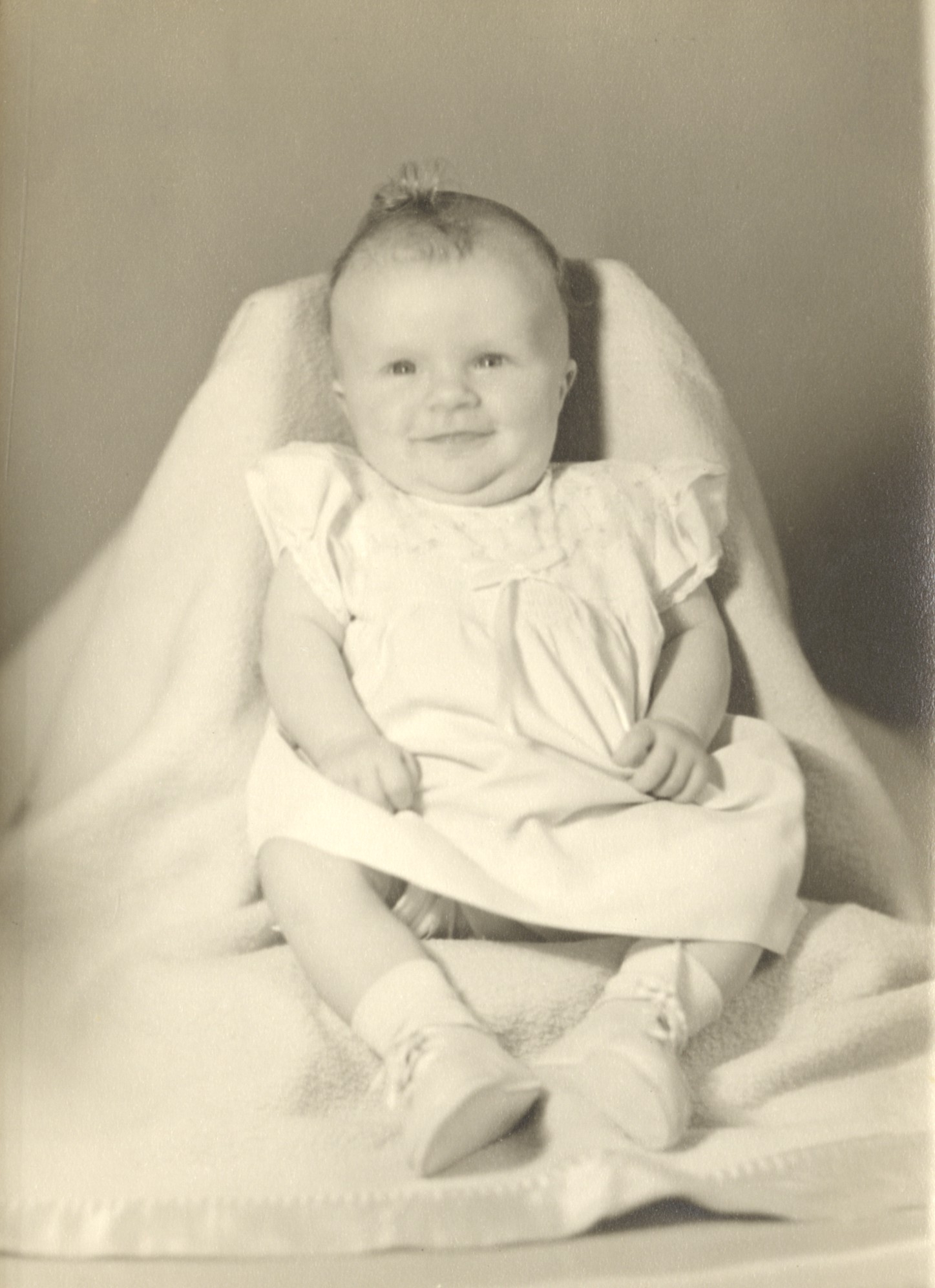 - Black and white photo image of Terry Hartnett at 3 months old.