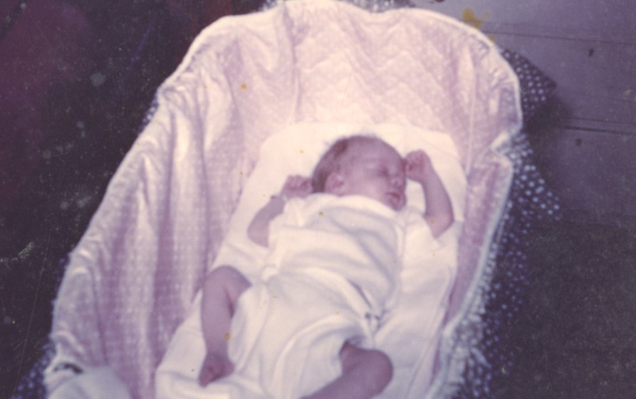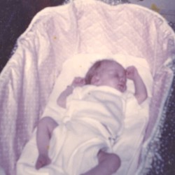 - Colorized photo image of Terry Hartnett as a baby, age one week.