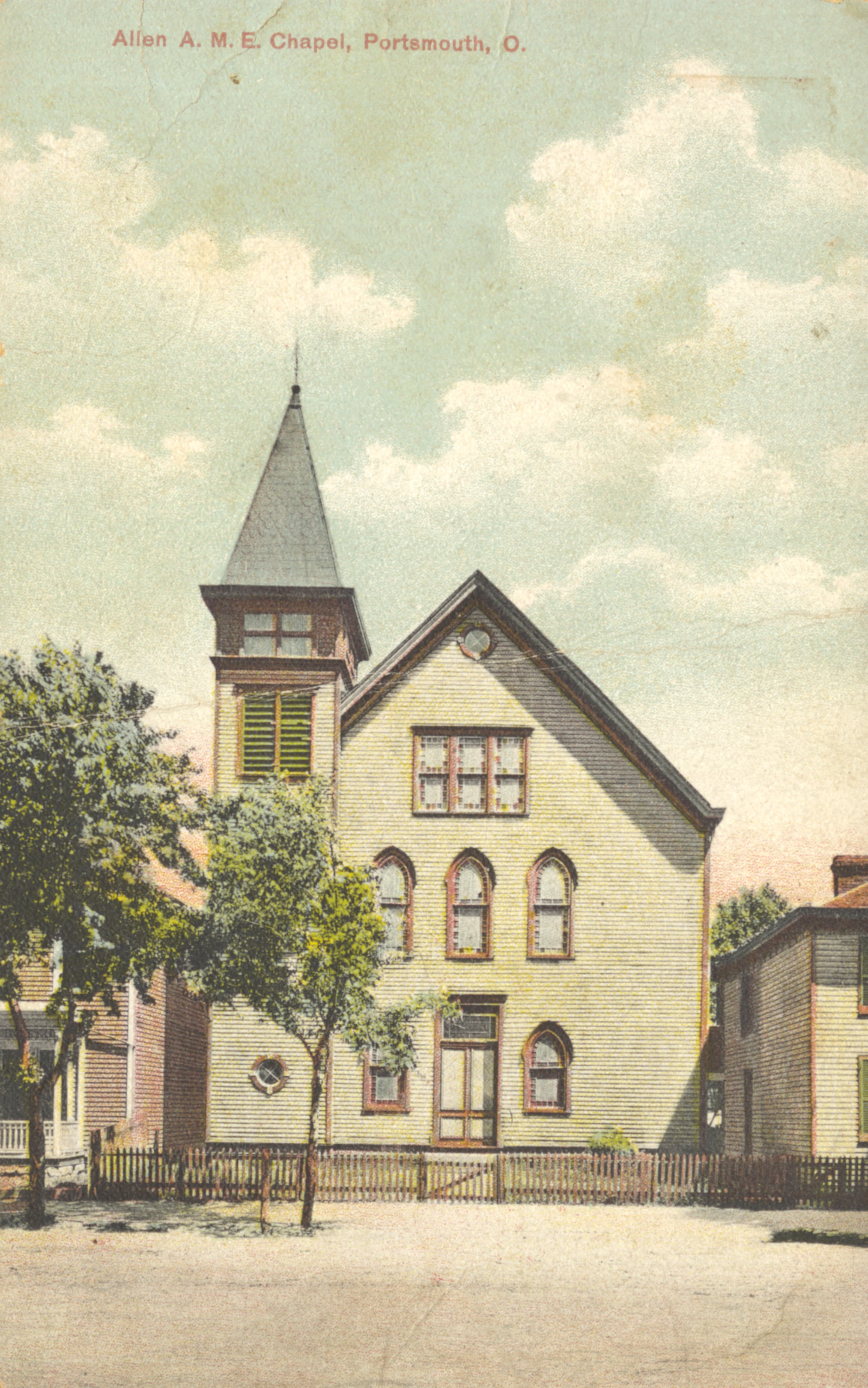 H.A. Lorberg, Made in Germany , “Allen A.M.E. Chapel, Portsmouth, Ohio,” Scioto County Public Library Local History Digital Collection, accessed December 5, 2025, https://www.sciotolibrary.org/history/items/show/29346.