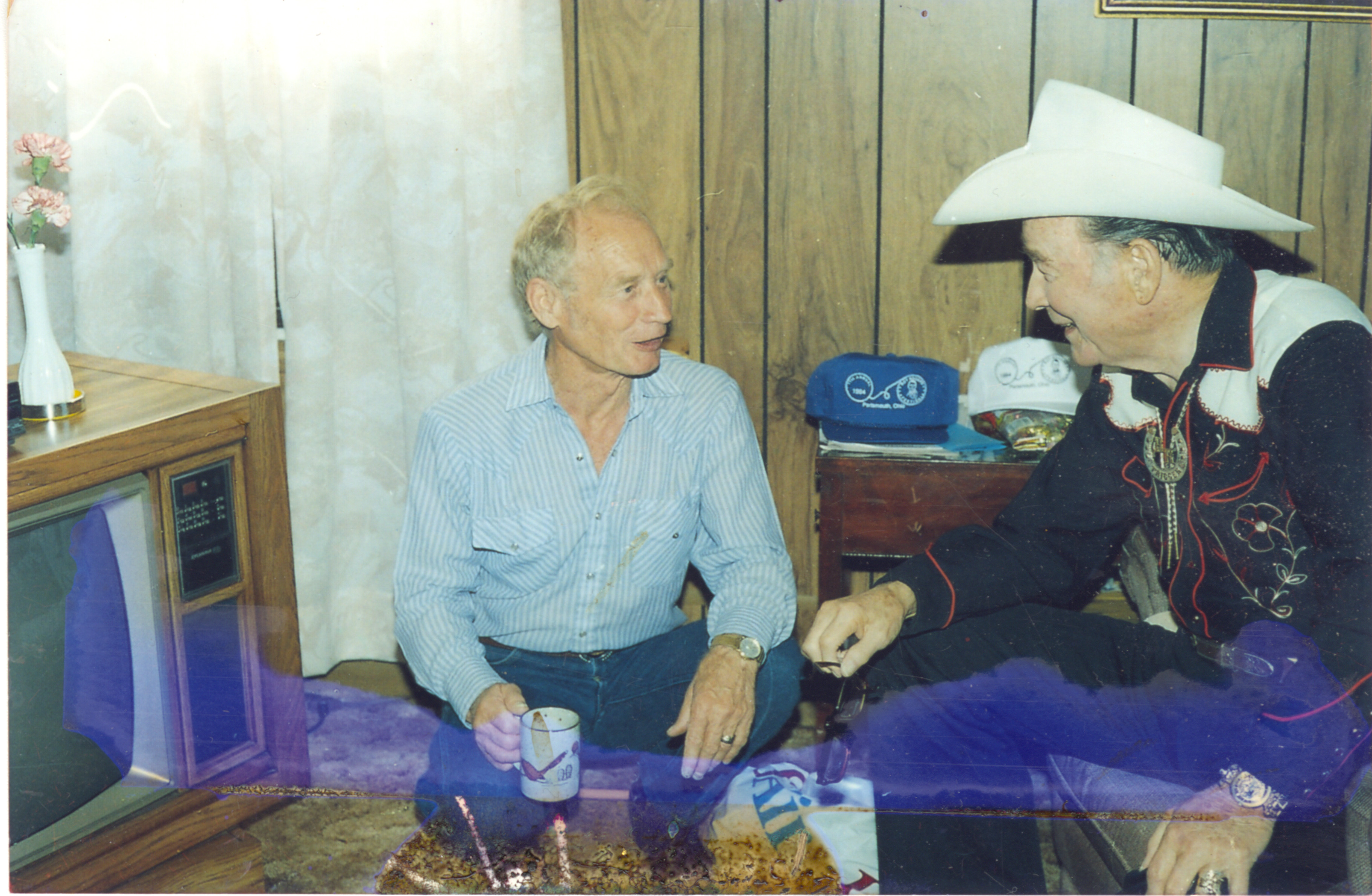 - Color photo of Roy Rogers (right) visiting friend in Portsmouth area.