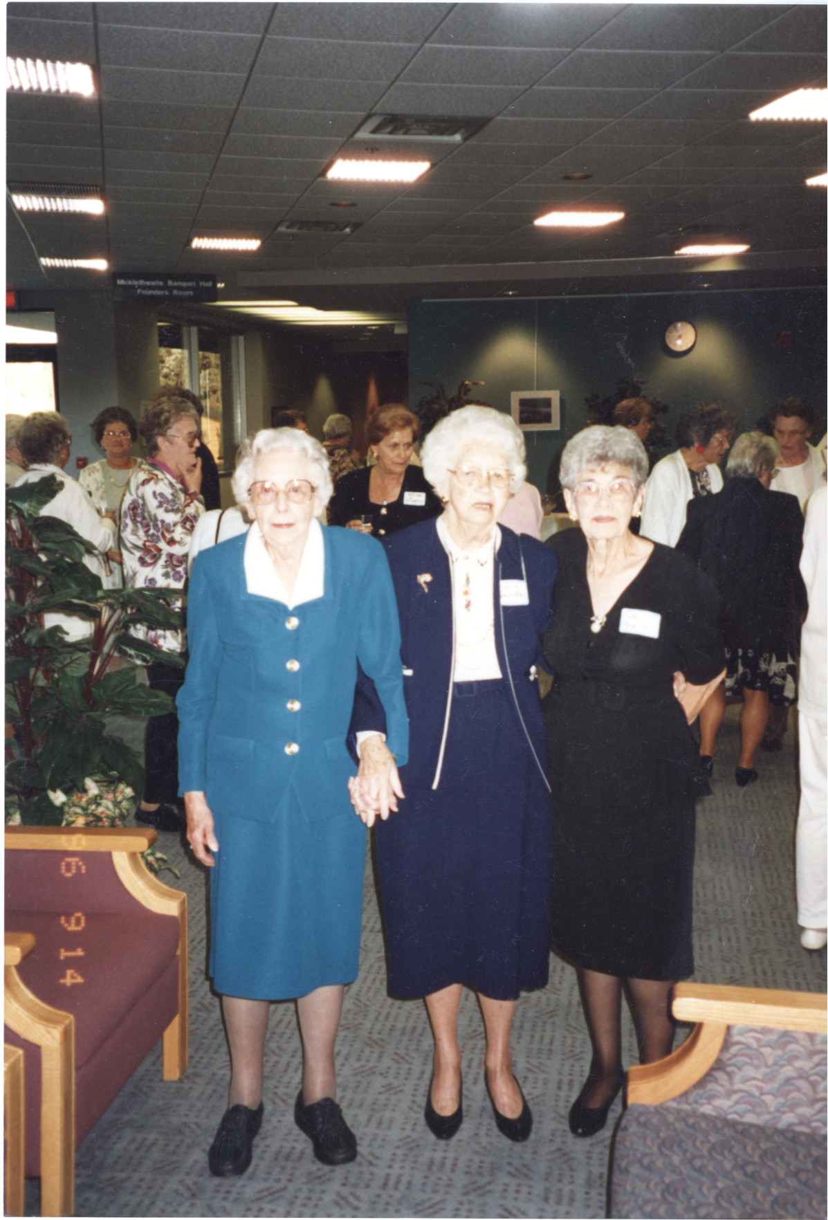- Color photo of Nurses Banquet attendees. (L-R) Mae Keil, Flora McNutt, and Esta Regner.