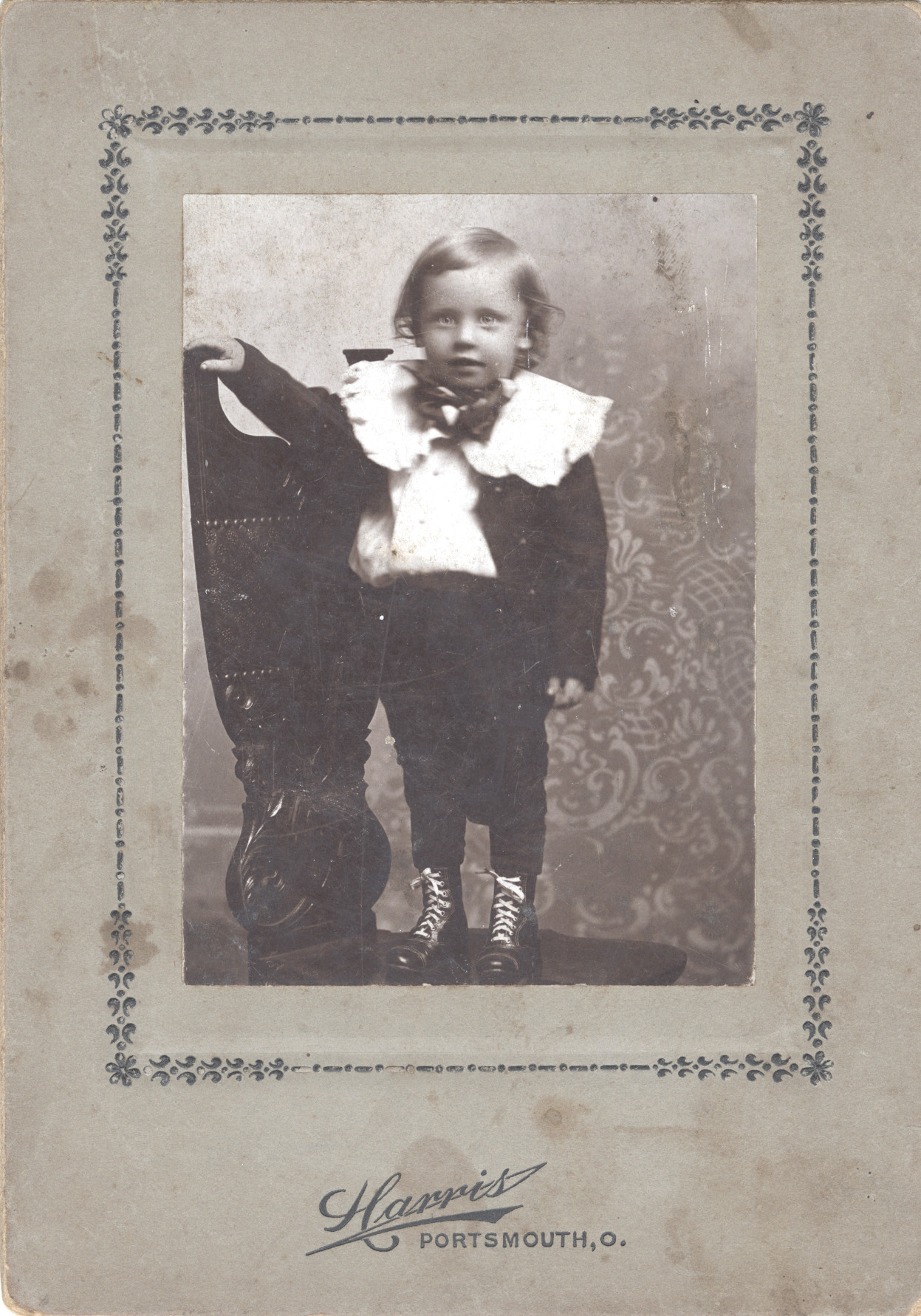- Sepia-toned carte de viste photo card with child. Information back: Olga Alonzo, B- 1900, 23, Feb; D - 1949, 05, AUG. Harris Portsmouth Ohio on front.
