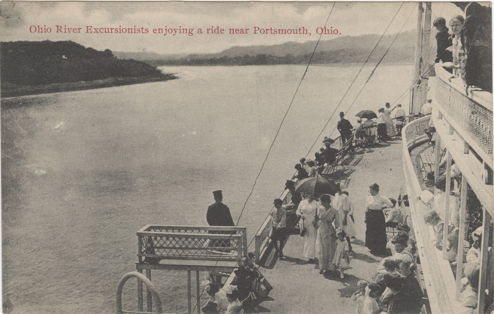 Kraemer Art, Cincinnati, Ohio, “Ohio River Excursionists enjoying a ride near Portsmouth, Ohio,” Scioto County Public Library Local History Digital Collection, accessed December 5, 2025, https://www.sciotolibrary.org/history/items/show/32244.