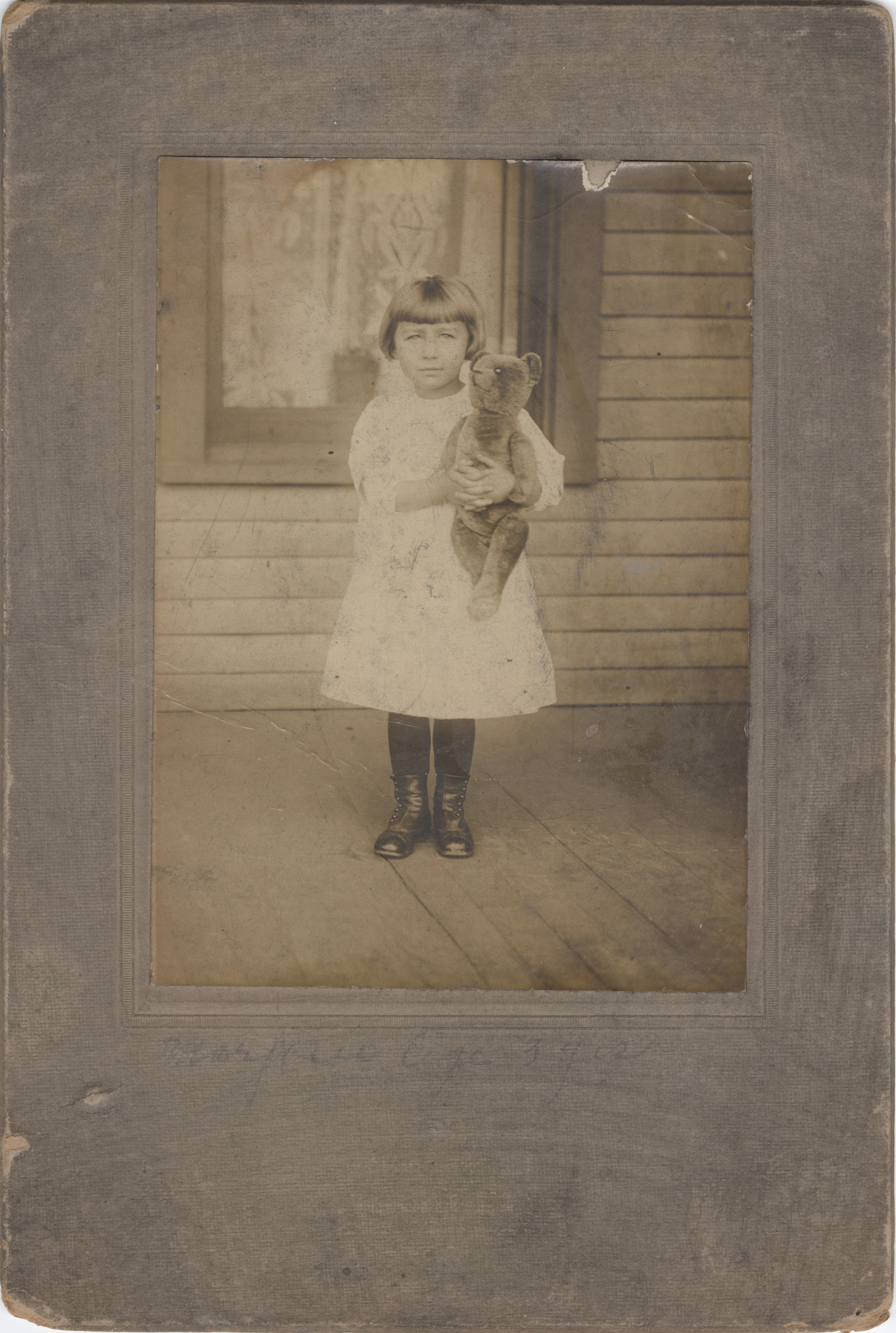 - Sepia-toned photo image in a cardboard frame of Marjorie Louisa Dodge. Writing on front: "Marjorie, Age 3 Yrs."