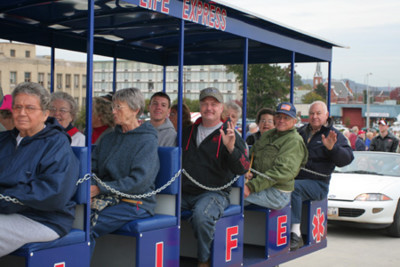 - The Life Express,sponsored by Life Ambulance, taking passengers across the new bridge.