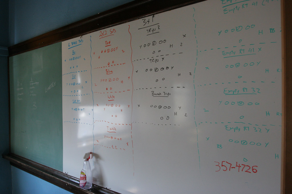 - Whiteboard with football plays in the old Portsmouth High School building built in 1912, closed in 2006, and razed in 2007.