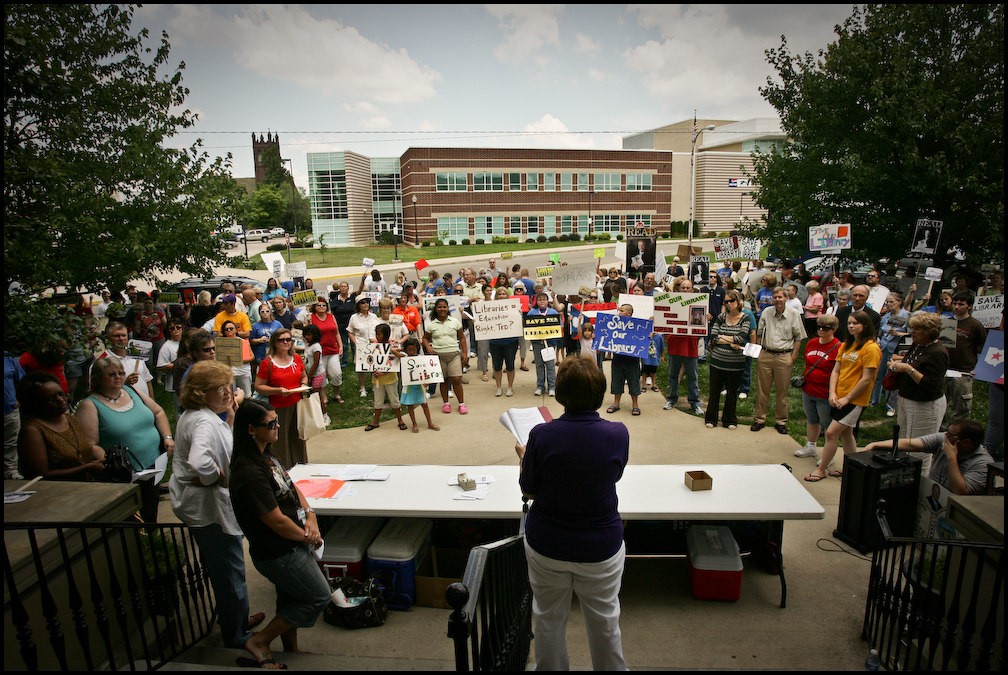 Terry Stevenson II, “Save Our Libraries Rally,” Scioto County Public Library Local History Digital Collection, accessed December 5, 2025, https://www.sciotolibrary.org/history/items/show/4169.