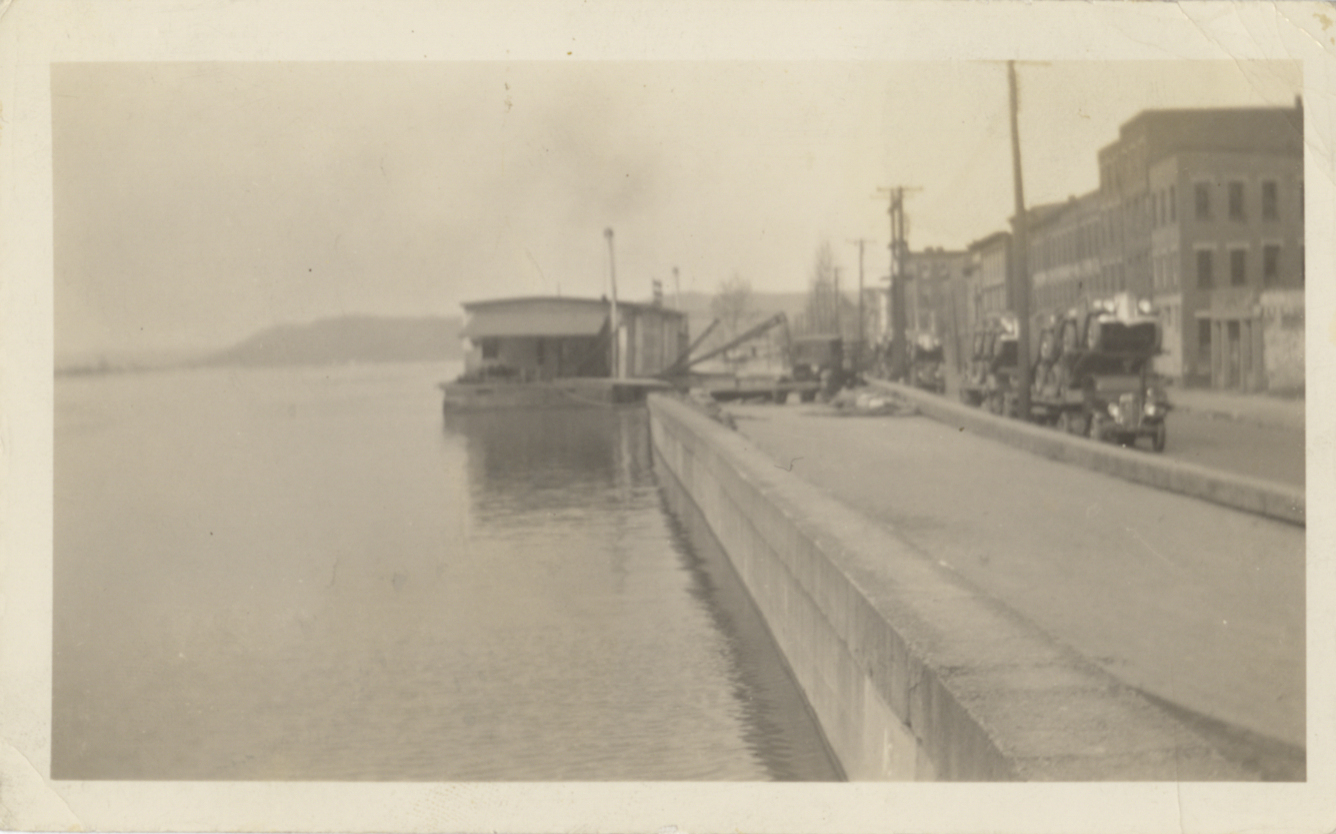 - Black & white photograph. Ohio River at flood stage along Front Street.