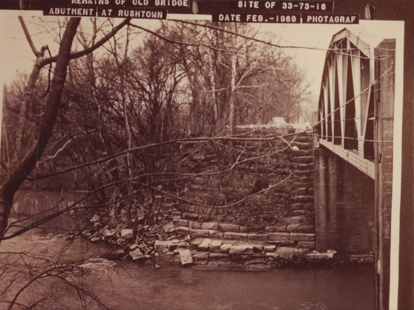 unknown, “Remains of old bridge abutment at Rushtown,” Scioto County Public Library Local History Digital Collection, accessed December 5, 2025, https://www.sciotolibrary.org/history/items/show/4432.