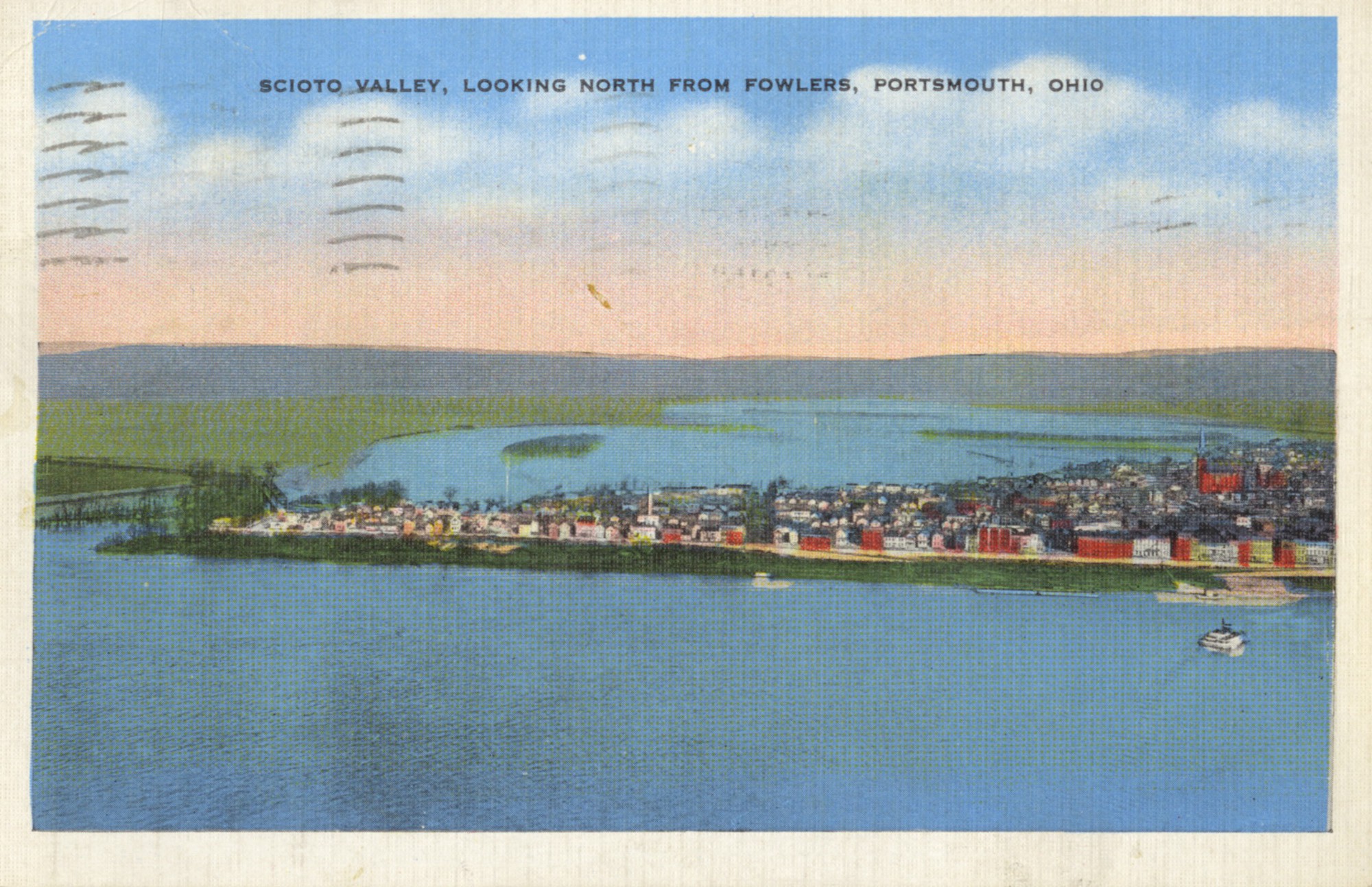 - Color photomechanical print of the city of Portsmouth, the Ohio River with the Scioto River; postmarked.