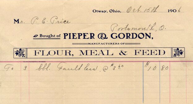 , “Pieper and Gordon Invoice,” Scioto County Public Library Local History Digital Collection, accessed December 14, 2025, https://sciotolibrary.org/history/items/show/5245.