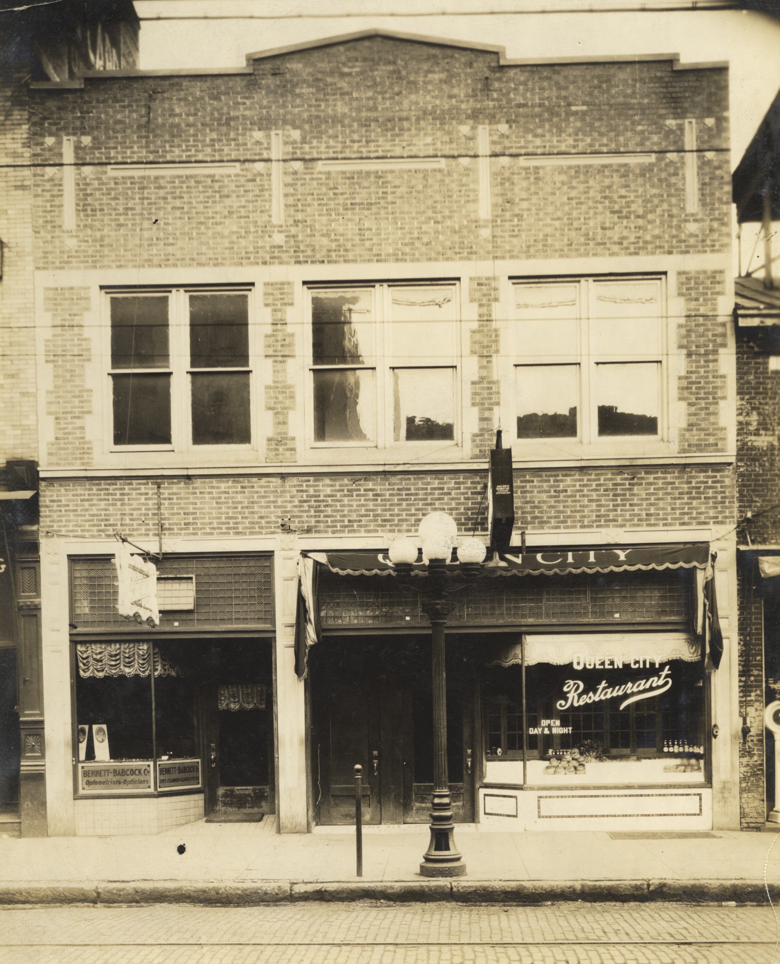 - Black and white photo image of the Malavazos Building, built 1923. It was located at 420 Chillicothe Street, Portsmouth, Ohio.