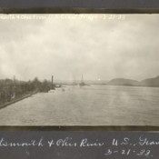 Looking east from the U.S. Grant Bridge. Swollen Ohio River along the floodwall and Front Street, Portsmouth, Ohio - Creator