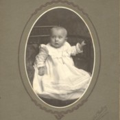 - 5 7/8 x 7 3/4 inch, black & white photograph mounted on olive green cardboard mat.