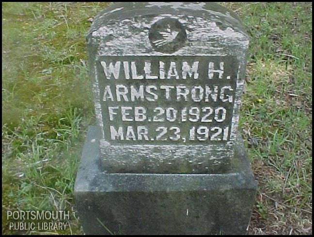 - Photo image of the headstone of William H. Armstrong in Odle-Piatt Cemetery located in Scioto County.
