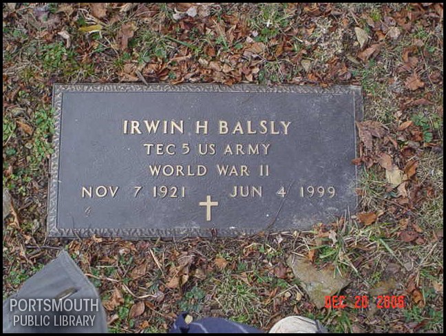 - Photo image of the headstone of Irwin H. Balsy in Mead Cemetery located in Scioto County.