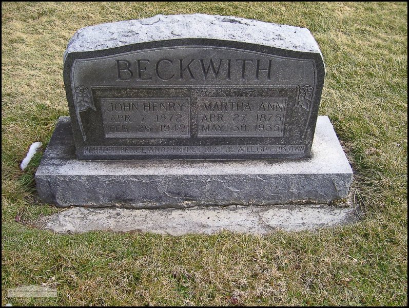 - Photo image of the headstone of John and Martha Beckwith in Sugartree Ridge Cemetery located in Highland County.