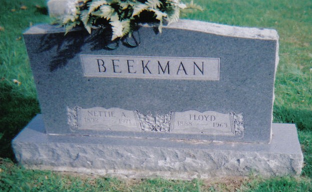 - Photo image of the headstone of Floyd and Nettie Beekman in Dunkard Ridge Cemetery located in Highland County.