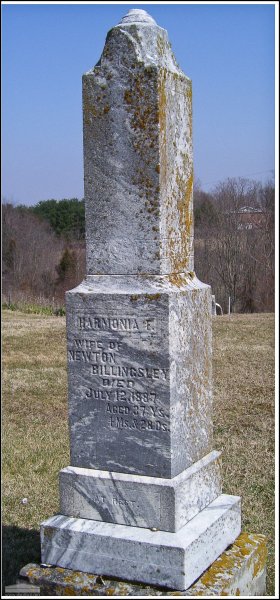 - Photo image of the headstone of Harmonia F. Billingsley in Prospect Cemetery located in Highland County.