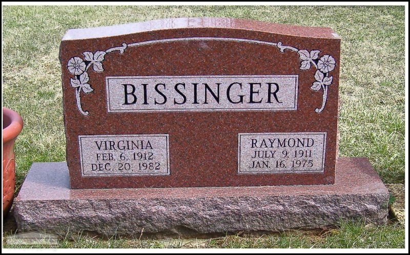 - Photo image of the headstone of Raymond and Virginia Bissinger in Village Cemetery located in Adams County. This cemetery is also known as Pumpkin Ridge Cemetery.