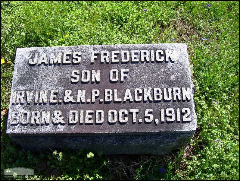 - Colorized photo image of the headstone of James Fredrick Blackburn