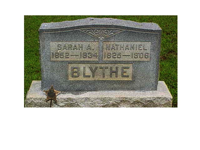 - Photo image of the headstone of Nathaniel and Sarah Blythe in Nesbitt Cemetery located in Adams County, Ohio.