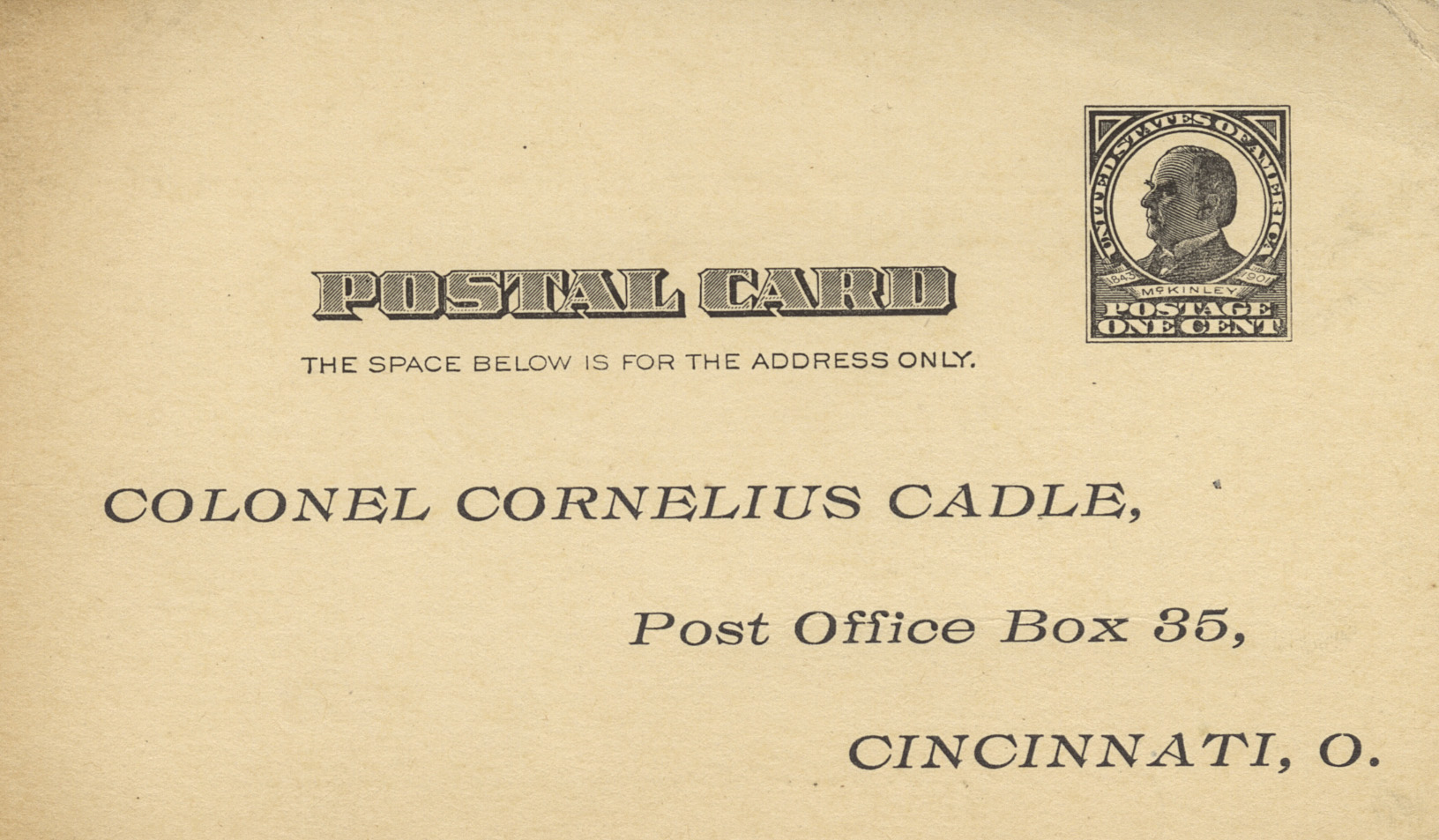 Colonel Cornelius Cadle Postal Card