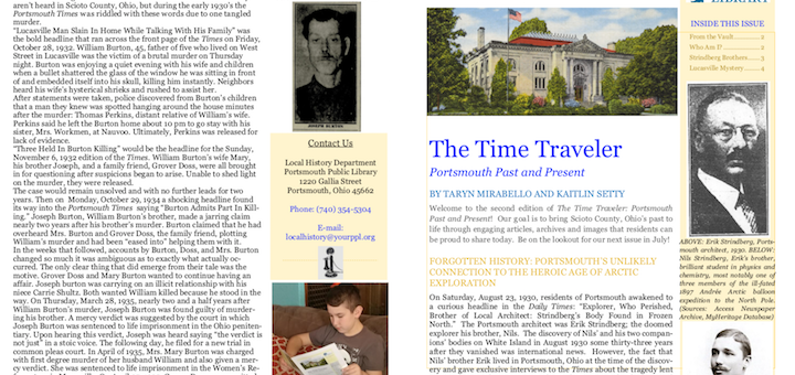 Welcome to the inaugural issue of The Time Traveler: Portsmouth Past and Present! Our goal is to bring Scioto County, Ohio’s past to life through engaging articles, archives and images that residents can be...