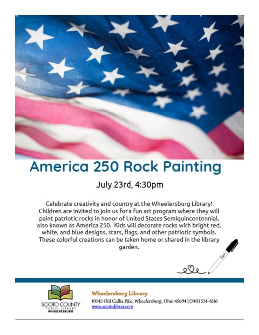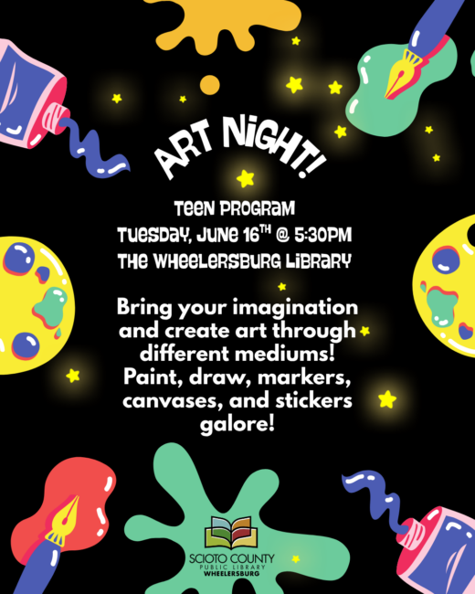 We will be hosting Painter’s choice. There are several options of items available to choose. The class begins at 5:30 p.m. There will be limited available seating, please stop in to pre-register, for more information, call the South Webster Branch Library at 740- 778-2122