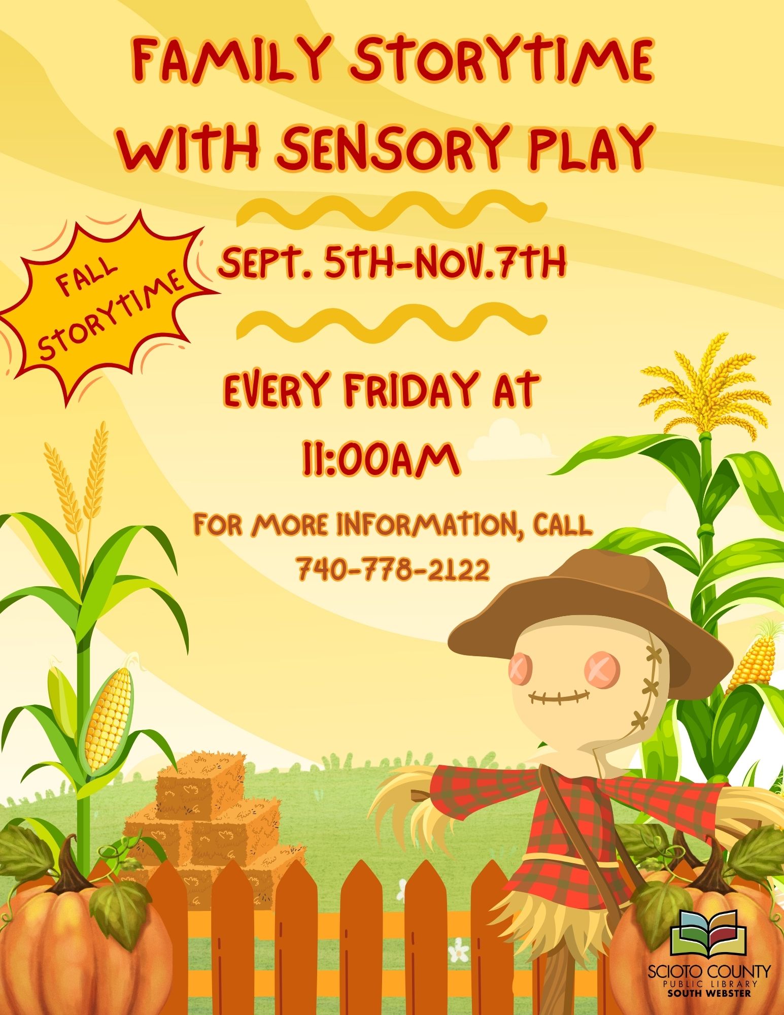 South Webster Library 496 Webster Street, South Webster, OH, United StatesFamily Storytime is for any child 6 and under. Join us as we read, play and craft. The program begins at 11:00am and lasts about an hour. For more information, call the South Webster Library at 778-2122.
